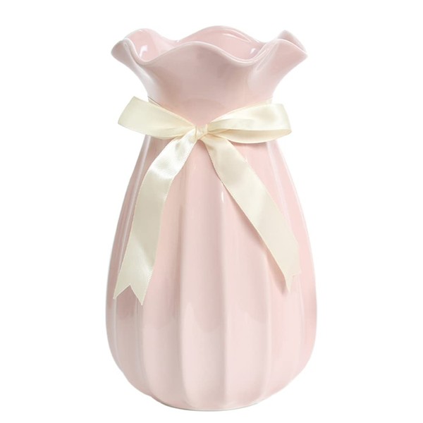 Ceramic Vases for Minimalist Modern Home Decor, Decorative Flowers Vase for Wedding Dinner Table Office Bedroom - Pink, Large