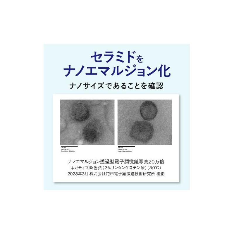 - Formulated with 16% of ceramic (*1) at a high concentration (*2). Nano emulsion technology creates a smooth and watery texture while emulsion Penetrates easily into the skin (*3) and wraps around the body in a firm and moisturize