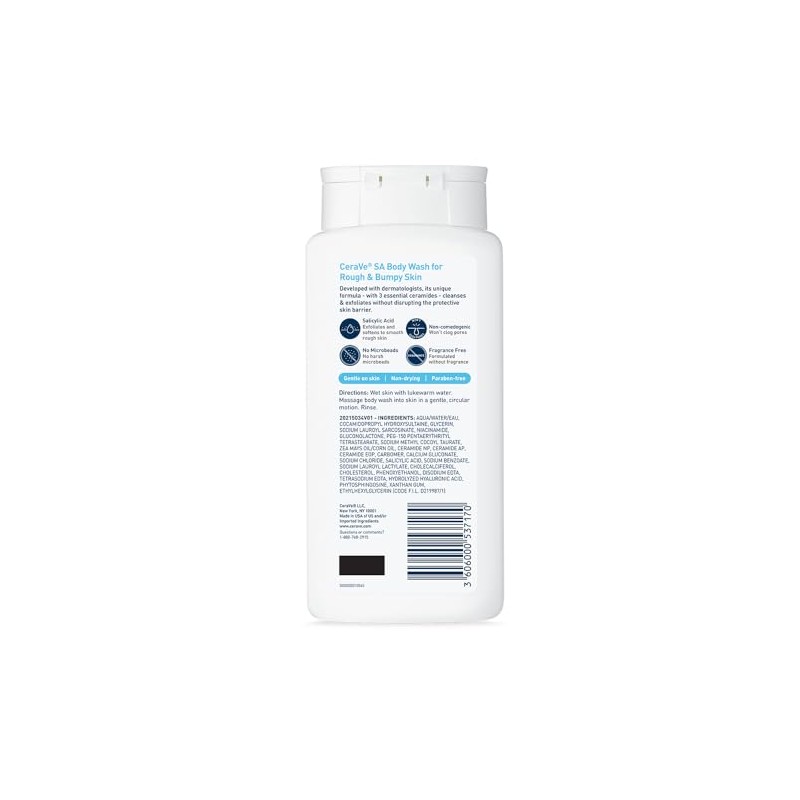 CeraVe Body Wash with Salicylic Acid 10 Ounce Fragrance Free Body Wash to Exfoliate Rough and Bumpy Skin