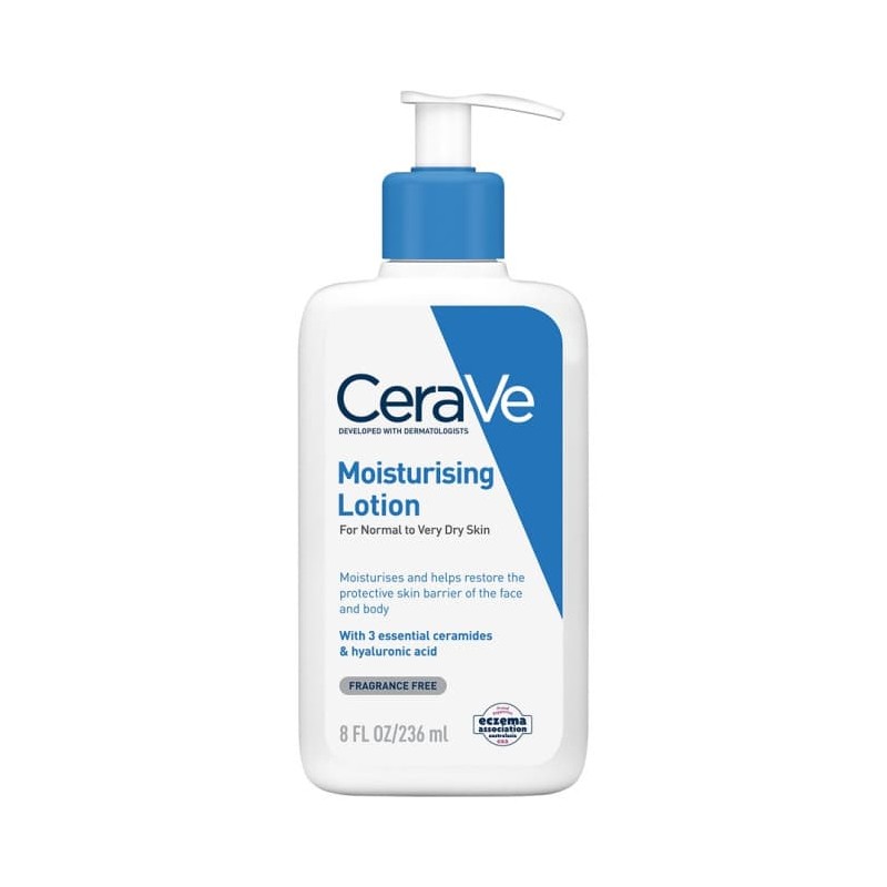 A lightweight moisturising lotion for normal to dry skin enriched with 3 essential ceramides to help strengthen the skin’s protective barrier. CeraVe Moisturising Lotion is a lightweight, oil-free moisturiser that hydrates the skin and helps strengthen the skin's protective barrier. Formulated with three essential ceramides and hyaluronic acid, this moisturising lotion features patented MVE Technology for 24 hour hydration and a lightweight, non-comedogenic formula that won’t clog pores. Hypoallergenic and non-irritating, this daily moisturiser is gentle on the skin as it provides lasting hydration. Moisturises and helps strengthen the skin’s protective barrier Lightweight and non-greasy MVE Technology: the Cerave range is designed with moisturising MultiVesicular Technology [MVE] to maintain hydration levels in the skin for 24 hours Ceramides: to maintain hydration and help strengthen the skin’s protective barrier Hyaluronic acid: This ingredient attracts hydration to the skin’s surface and helps the skin retain moisture Non-comedogenic, hypoallergenic, oil-free and fragrance-free Developed with dermatologists Eczema Association Australia™ endorsed. The EAA stamp identifies products that are suitable for eczema prone skin.