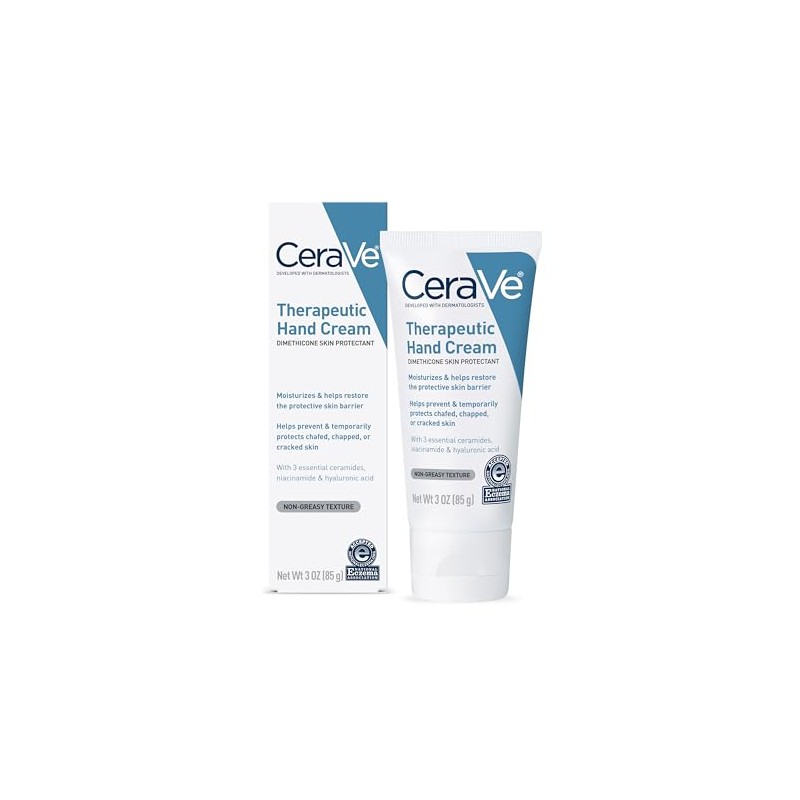 Developed with dermatologists, CeraVe Therapeutic Hand Cream helps protect and restore the skin barrier from harmful irritants. It contains three essential ceramides (1, 3, 6-II) that help restore and maintain the skin's natural protective barrier. This fragrance-free hand cream also contains the skin protectant dimethicone, and the water-resistant, non-greasy, fast-absorbing, non-irritating formula features patented MVE Delivery Technology for 24-hour nourishment that restores and maintains smooth, soft skin.?Fragrance-free?Gentle, non-irritating formula?Accepted by the National Eczema AssociationKey Ingredients:?Ceramides: Essential for healthy skin, ceramides help restore and maintain the skin's natural barrier?MVE Technology: This patented delivery system continually releases moisturizing ingredients for 24-hour hydration?Hyaluronic Acid: This ingredient attracts hydration to the skin's surface and helps the skin retain moisture?Niacinamide: Helps calm the skin