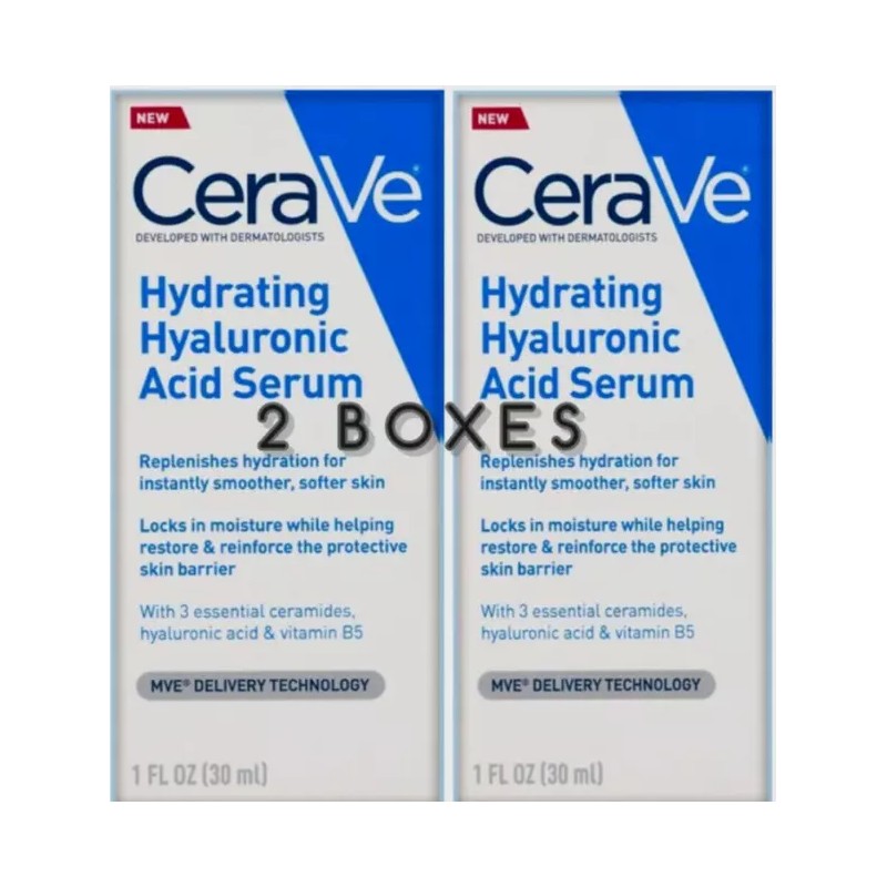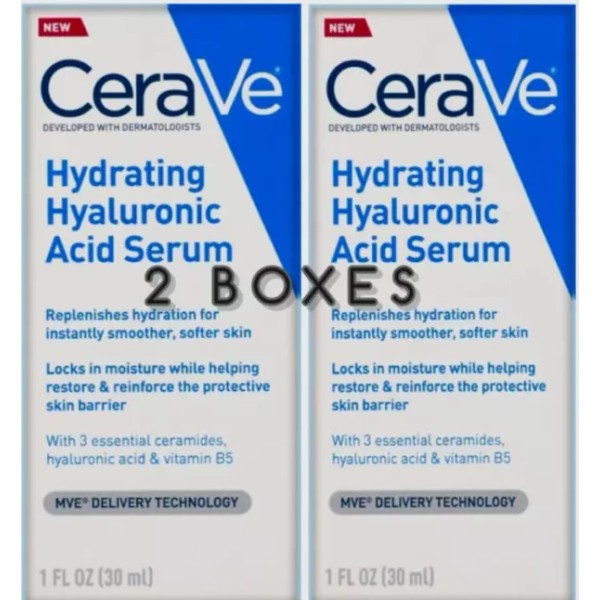 CeraVe Hydrating Hyaluronic Acid Face Serum 1 oz (2 BOXES)