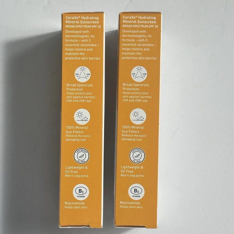 CeraVe Hydrating Mineral Sunscreen Face Lot Of 2 SPF 30, 2.5 oz Each Exp 02/27.