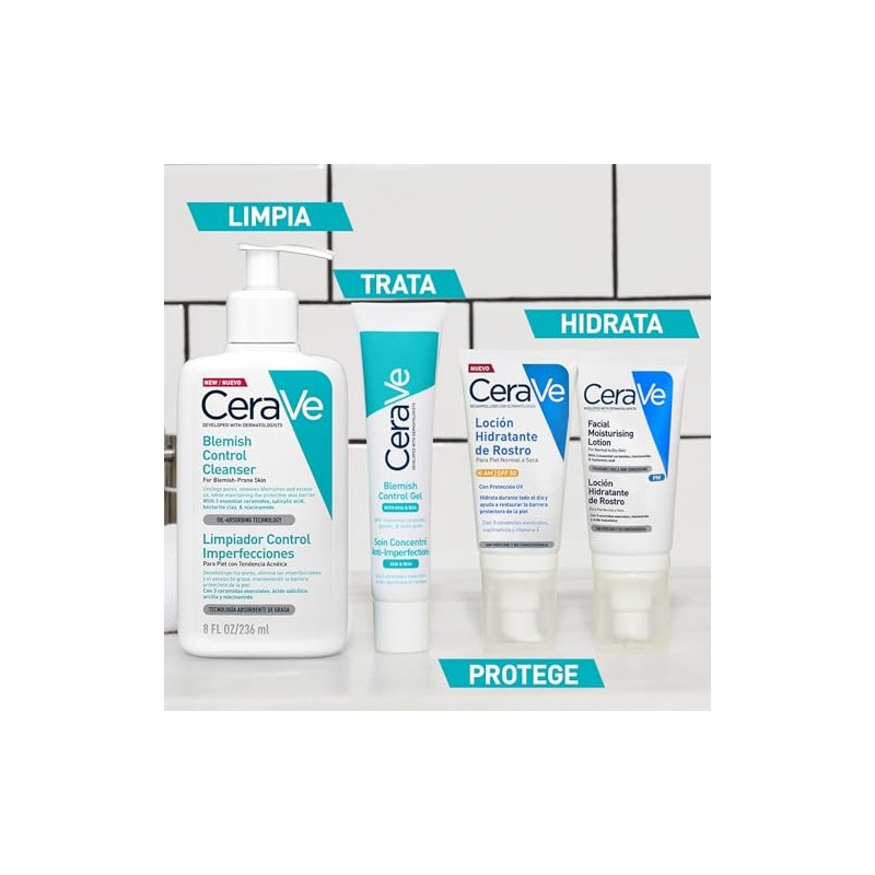 CeraVe Limpiador Control Imperfecciones 16oz para piel con tendencia al acn,con cido Saliclico, Niacinamida y Arcilla Purificante.