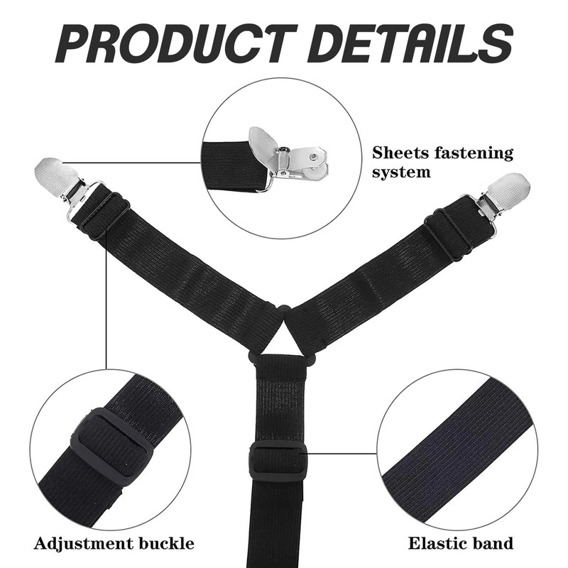 - 【Heavy-Duty, Wide Elastic Straps】 The fitted sheet clips, thick nylon straps provide excellent stretch and strength to keep your sheets firmly in place, even after a restless night. They’re built to last and never lose their elasticity.