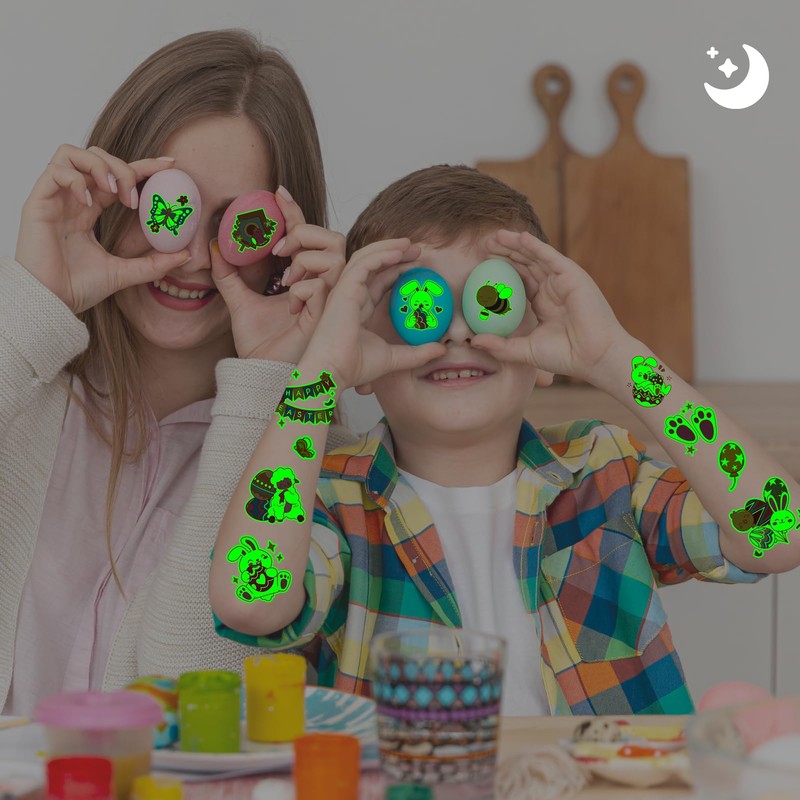 - 【Glow & Last Long】Easter basket stuffers party favors have a good glow effect and are easily popular with kids. These Easter items are waterproof, sweatproof, and will not wash off with water. Putting them on a body part that does not rub easily can last about 3-7 days.