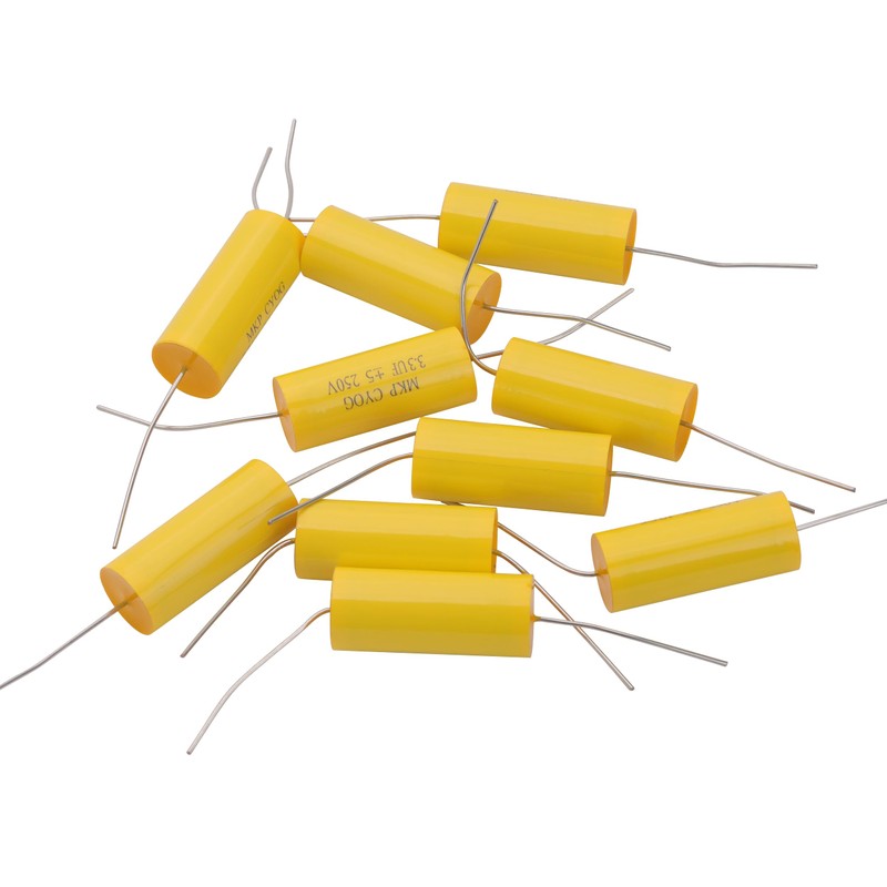 Cermant 10Pcs 3.3uF 250V Frequency Divider Capacitor, 5 Pcs Axial Audio Speaker Crossover Step-Less Film MKP Capacitor for Audio Equipment, Yellow