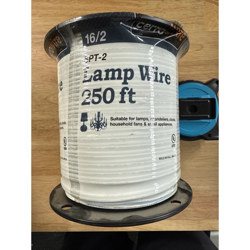 Cerrowire 250 ft. 16/2 Black Stranded Copper Lamp Wire is a high-quality product made for industrial use. The wire is new and has never been used. It features a black sheath color and a stranded wire style, making it ideal for multiple conductor cable needs. The unit type is measured in feet, and it has a voltage rating of 300. The wire gauge is 16, and it has two conductors. This product is perfect for those in the electrical equipment and supplies industry who need reliable and durable wire and cable.