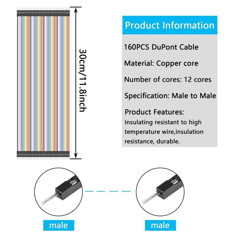 - ✅Package Include: 4X 40-pin male to male jumper wire. Each cable length: about 30 cm/11.8 inch. Jumper wires can be separated into single root as you like.