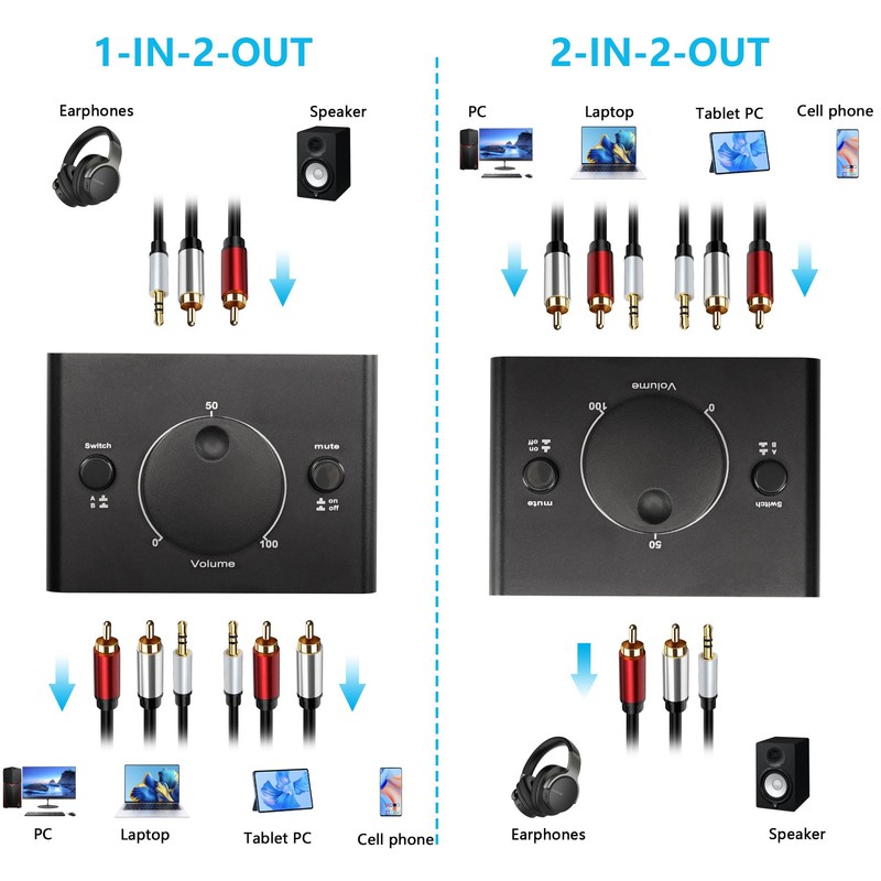 - Widely Compatible, the 3.5mm RCA Stereo Audio Switcher is compatible with a variety of audio devices such as smart phone ,computer,ipad,speaker and headphne,etc.