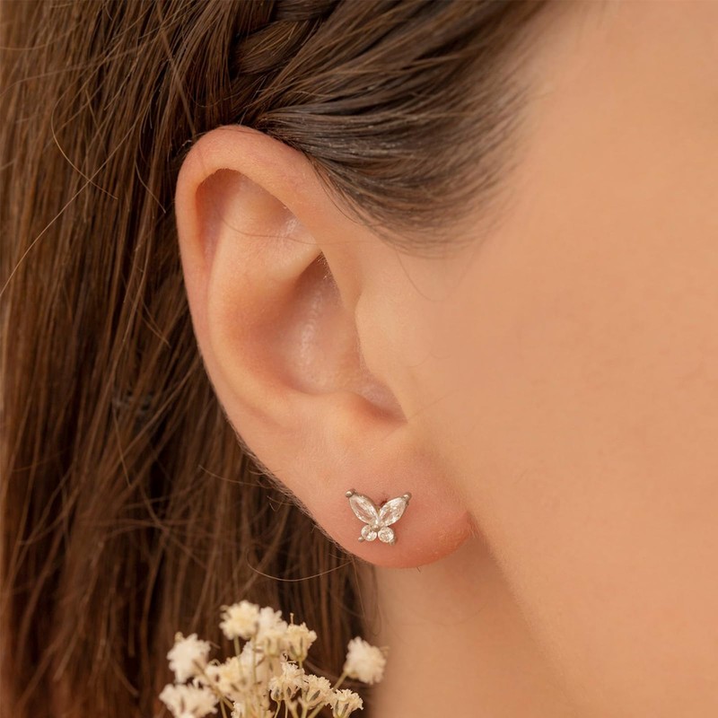 - Size: earrings stud set, butterfly stud earrings 6 mm. Hoop earrings 10 mm. Cubic Zirconia Earrings 12 mm.