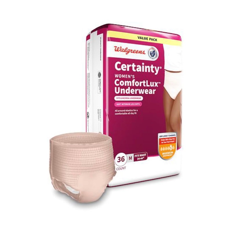 Certainty ComfortLux Women's Underwear, Maximum Absorbency, Medium Size 34-44" Waist, 36 Count (Pack of 2) Total of 72