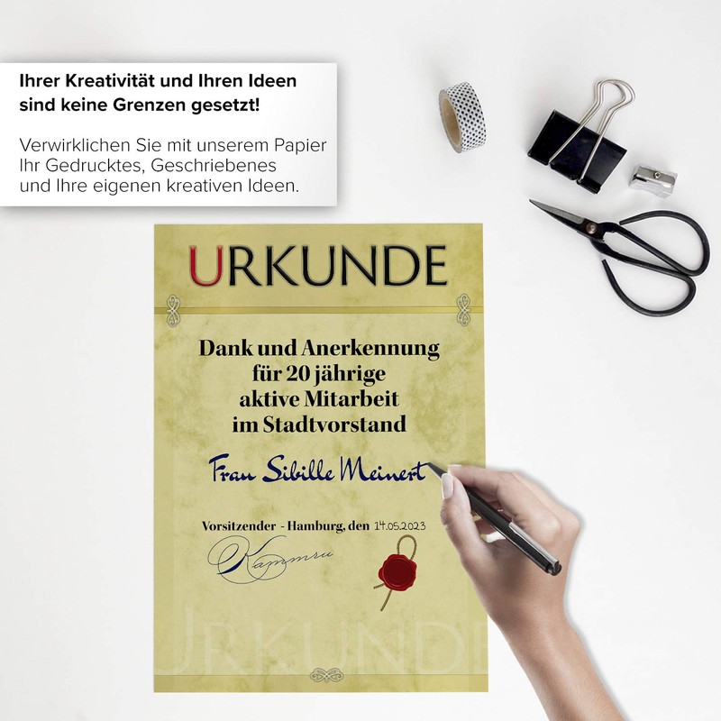 - Certificate paper with print "Urkunde" elegant, in a set (30 sheets DIN A4)