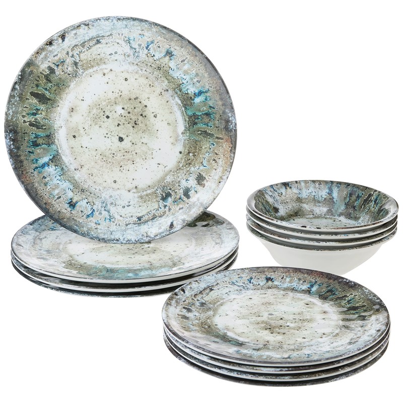 • Includes: 4 each: 10.5" dinner plates, 8.5" Salad/dessert plates, 7.5"X2" all purpose bowls