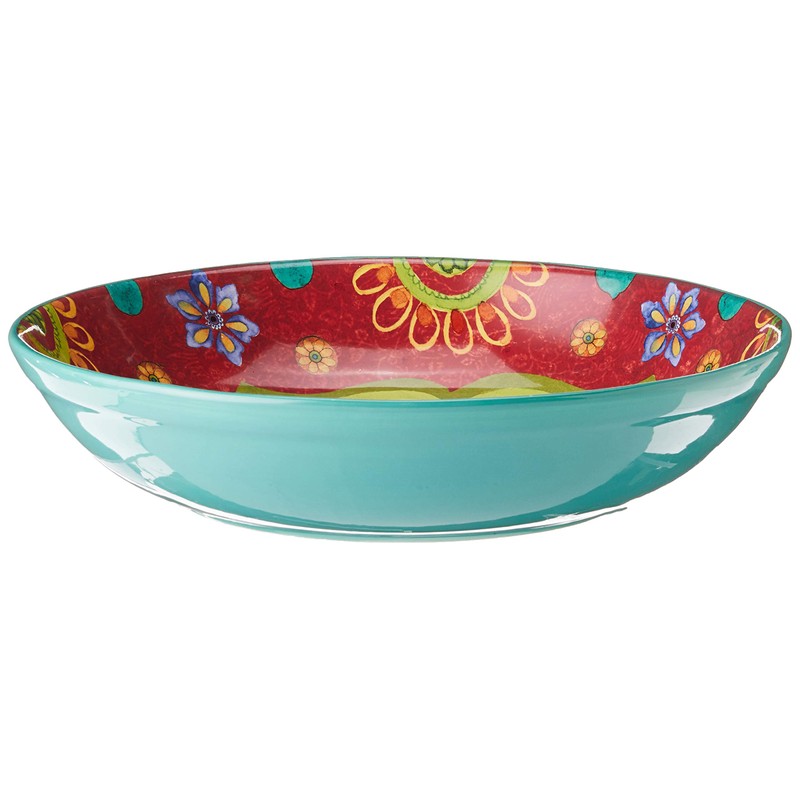 Tunisian Sunset 13.25" Ceramic Serving Bowl – 128 oz. Multicolor Pasta Bowl with Boho Floral Pattern, Large Decorative Dish for Entertaining, Salad, Fruit, or Rustic Kitchen Décor