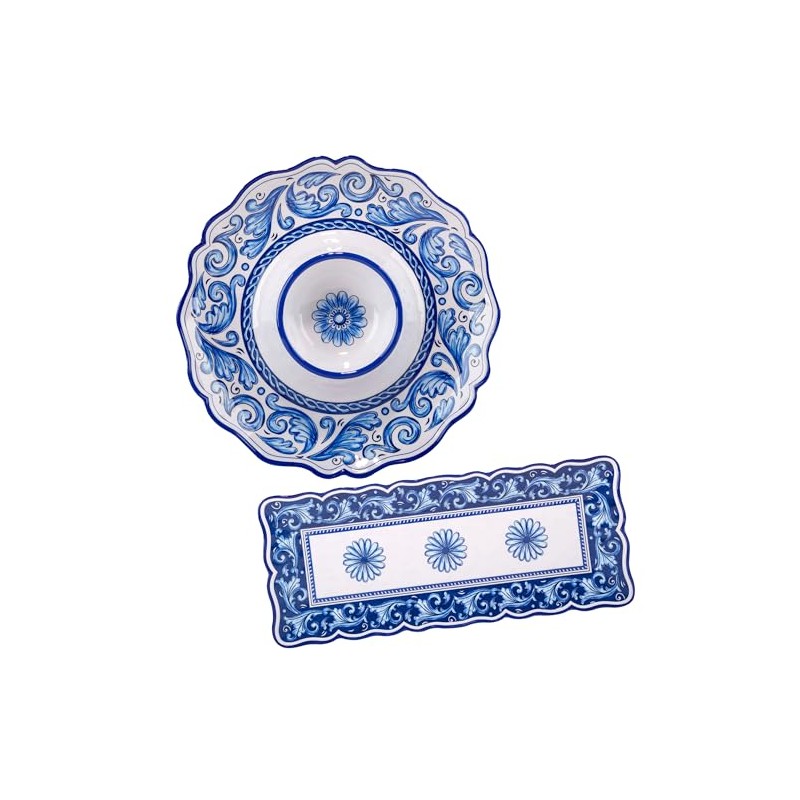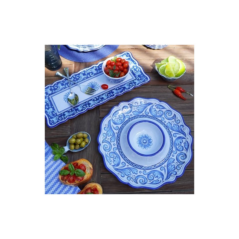 • Sophisticated Style: The Veranda set's intricate patterns and vibrant colors bring a touch of elegance to your serving ensemble, reminiscent of Mediterranean ceramics.