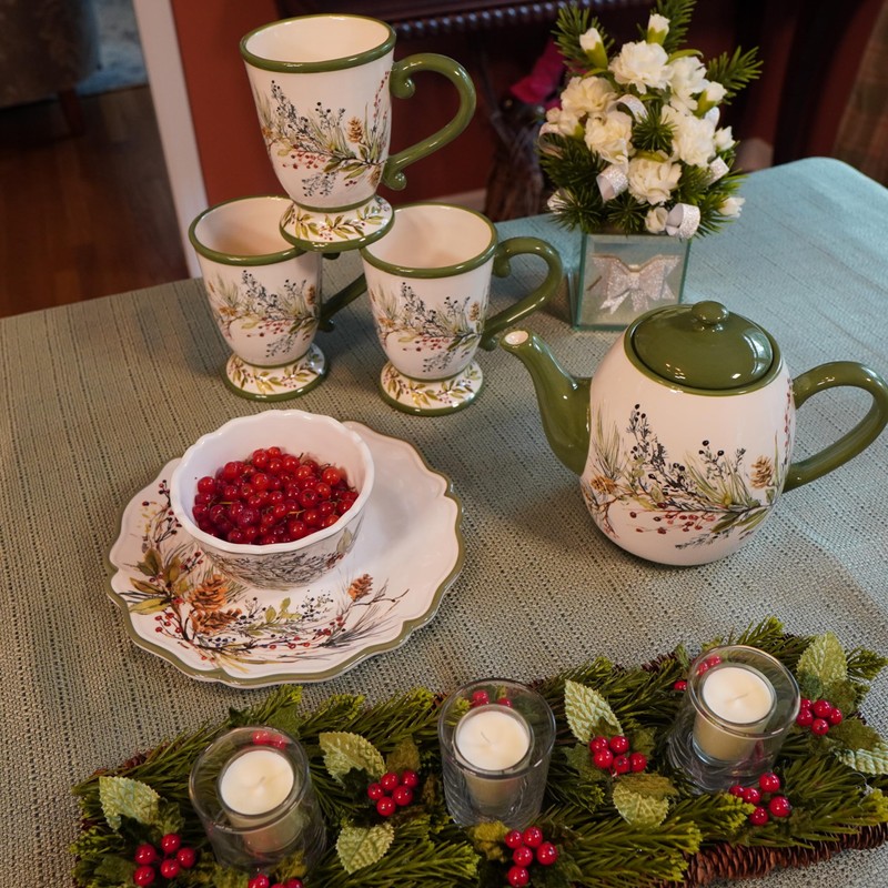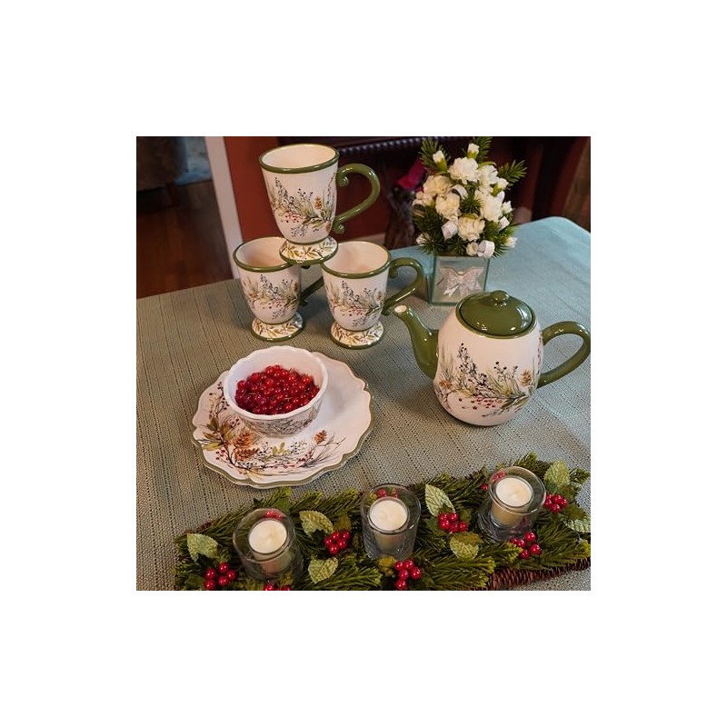 - Elegant Design: Features a stunning winter forest theme with intricate pinecones, evergreen branches, and berries. The detailed artwork adds a touch of seasonal charm to your tea time.