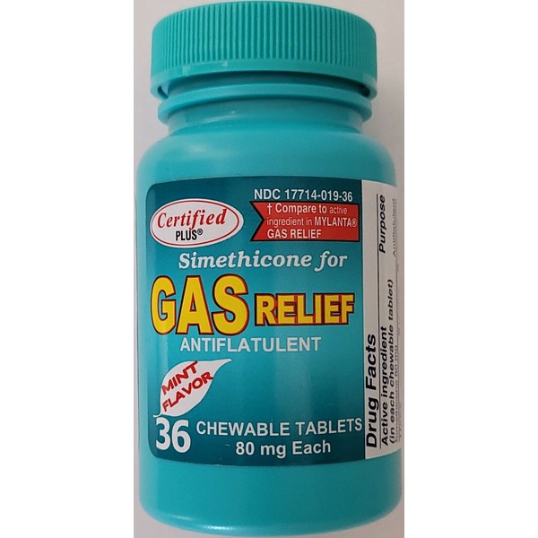 CertifiedPlus GAS RELIEF Bloating Pressure Chewable Mint Flavor Tablets 36/Pk