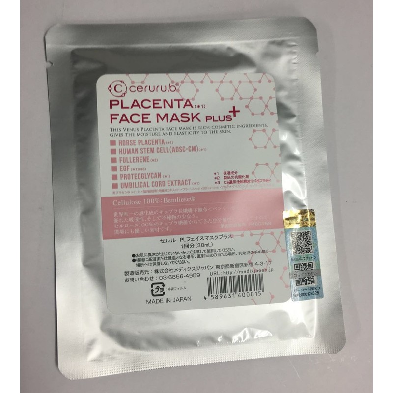 • Ceruru.b / Cell Placenta Face Mask 5 Packs. The old label was discontinued in January 2018, and will be sold in new packages. QR code included, can be scanned by WeChat