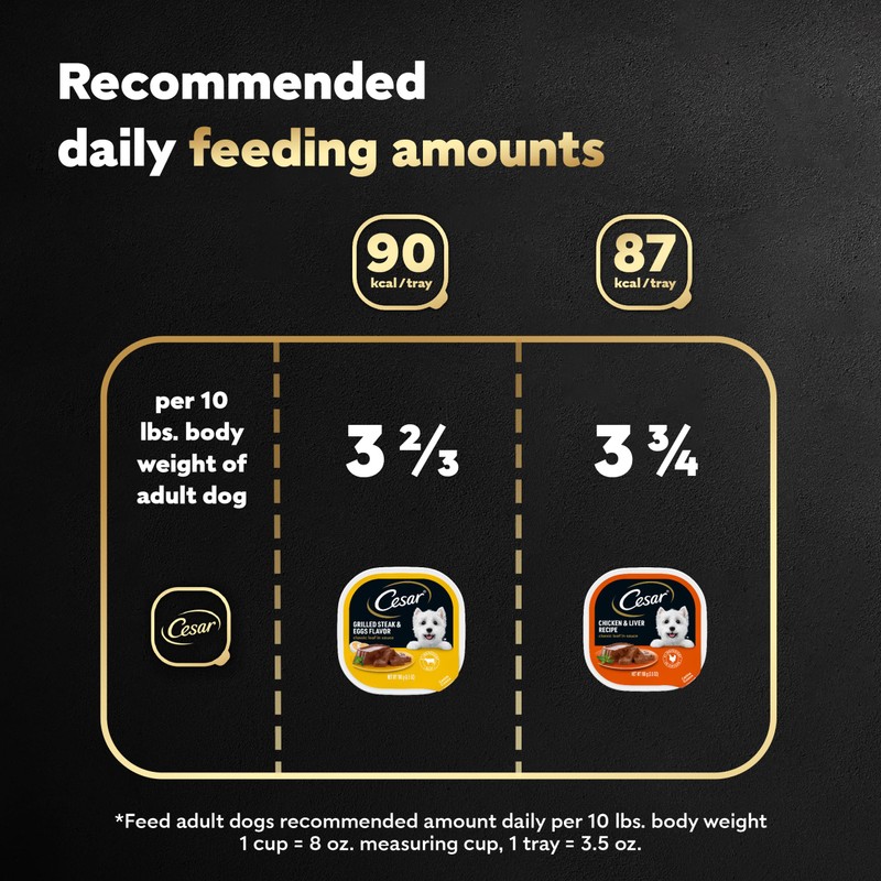- Contains twelve (12) 3.5 oz. easy peel trays of CESAR Wet Dog Food Classic Loaf in Sauce Breakfast and Dinner Mealtime Variety Pack
