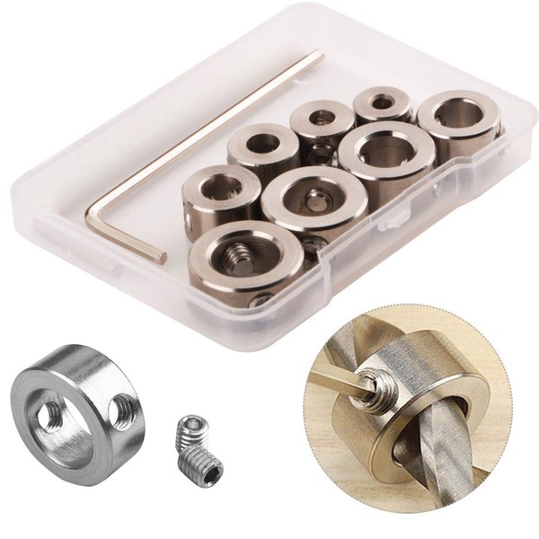 CESFONJER 3-10mm Drill Bit Depth Stop Collar Ring Positioner Spacing Ring Positioner Locator Durable Woodworking Drill Bit with Hex Wrench (8PCS Drill Bit Depth Stop Collar)