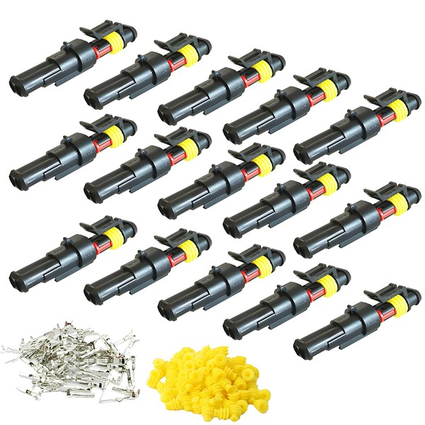 CESFONJER Car Waterproof Connector, Waterproof Electrical Terminals, Motorcycle Scooter Truck Marine Plug Socket Kit, 2 Pins x 15 Kits
