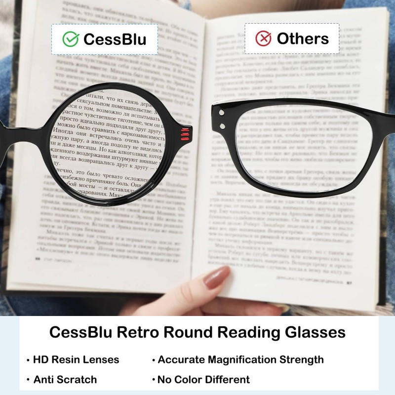 • VINTAGE CHEATER GLASSES: With small round frame design, CessBlu ladies chic reading eyeglasses are suitable for all ages and all face shapes. Retro round frame can personalize your style and perfectly show your elegance.