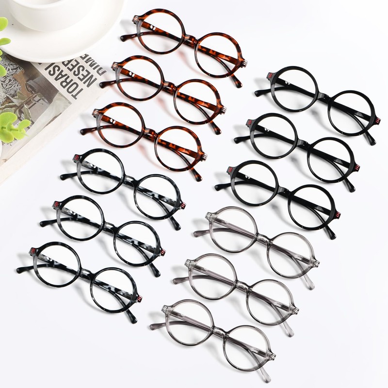 CessBlu 12 Pack Retro Round Reading Glasses for Women Spring Hinges Small Rea...