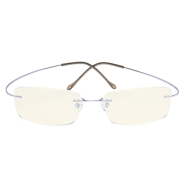 CessBlu Rimless Blue Light Blocking Glasses for Men Reading Computer Titanium Computer Readers Cut UV Rays Bendable (Silver) +2.0