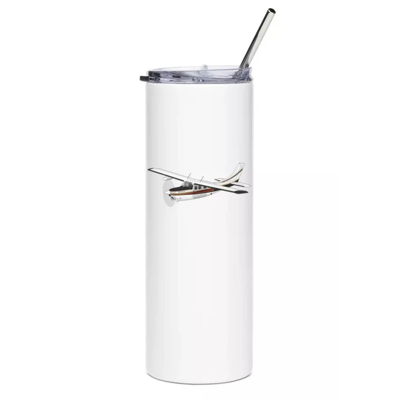 This Cessna P210 'Silver Eagle' Stainless Steel Water Tumbler with straw is a must have for any aviation enthusiast. Featuring the turbine Cessna P210, this 20oz water tumbler is perfect for on-the-go use.