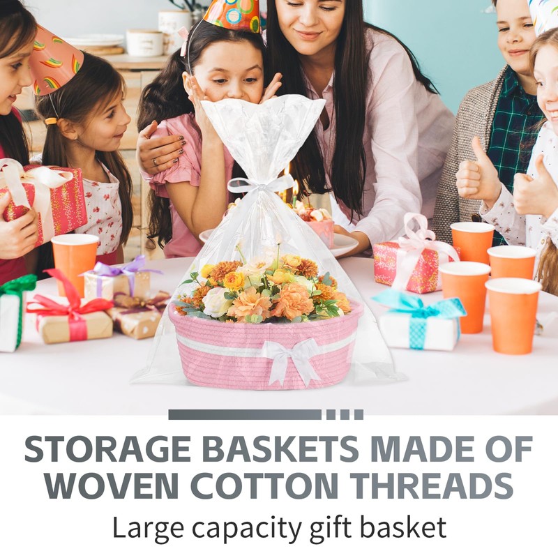 - 【Elegancia hecha a mano y material de alta calidad】Experimenta el encanto del tela artesanal con nuestra cesta de regalo. hábilmente tejida a mano con cuerda de algodón de alta calidad y larga duración, esta bonita cesta para regalos cuenta con una construcción resistente que garantiza que tus regalos se muestren y almacenen con estilo, por lo que es una excelente cesta de regalo para bebé o cesta de cumpleaños.