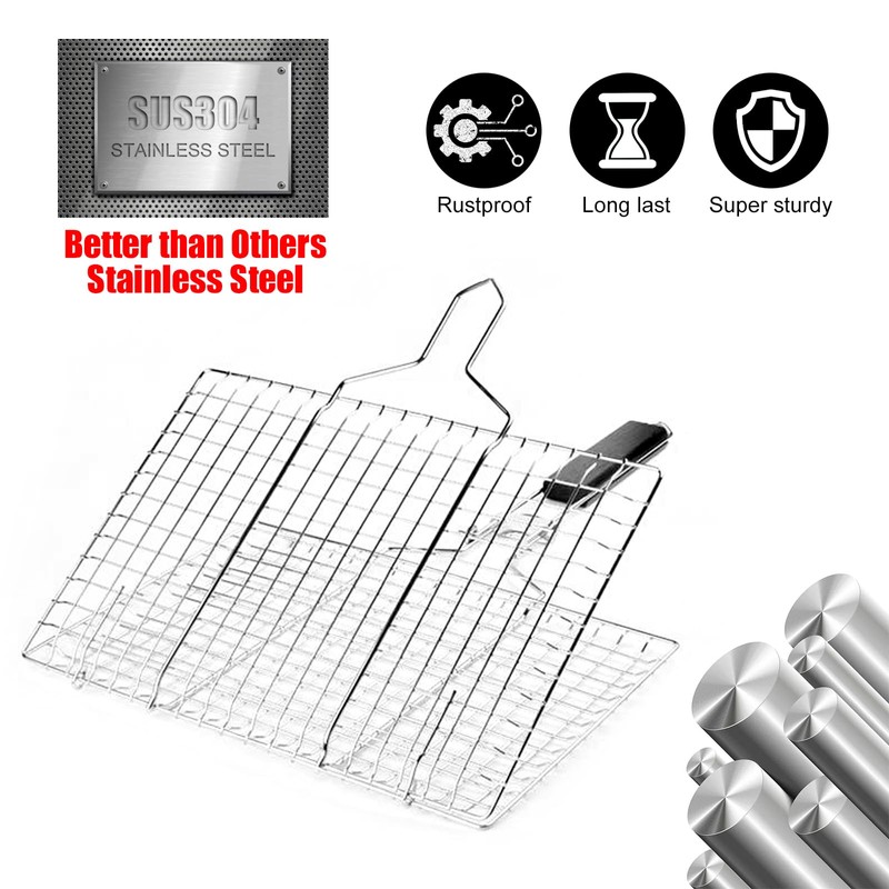 - 🔥 Rejilla creativa con bloqueo, gruesa, fuerte y duradera, pero ligera y portátil. La parrilla con cerradura bloquea los alimentos en su lugar y se gira fácilmente. Es ideal para asar hamburguesas, filetes, mariscos, verduras, pescado, carne, camarones y otros alimentos delicados.