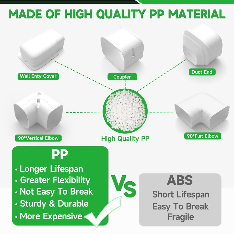 - Greater Flexibility PP & Premium Quality PVC: Our line hide is made of Greater Flexibility PP & Premium Quality PVC and safe for temperature -40-140℃, and this mini split cover kit will make your house more neat and protect your AC lines for years without fading, cracking, or deforming