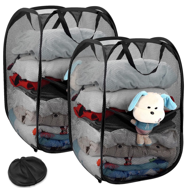 - 👚Material premium: nuestro cesto para la ropa está construido con una malla de poliéster duradera y elástica forrada con alambre de acero, altamente transpirable, no es fácil de romper, fuerte y confiable, duradero