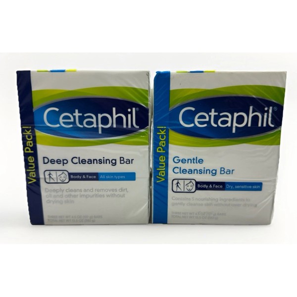 Cetaphil 6 cetaphil deep cleansing bars body & face 4.5oz ea