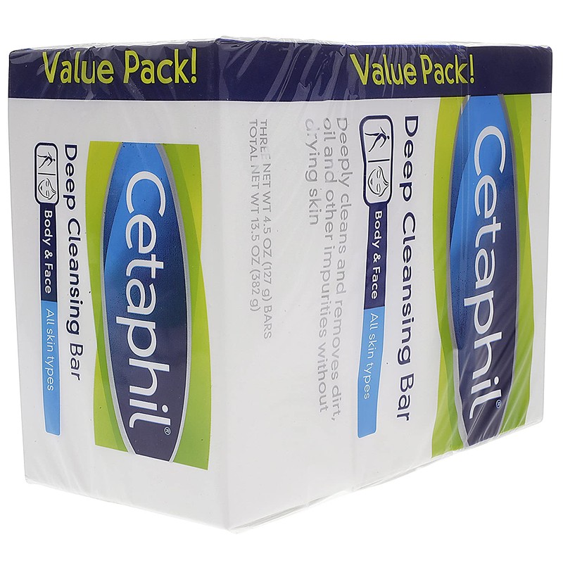 Cetaphil Deep Cleansing Face & Body Bar for All Skin Types, 3 Count