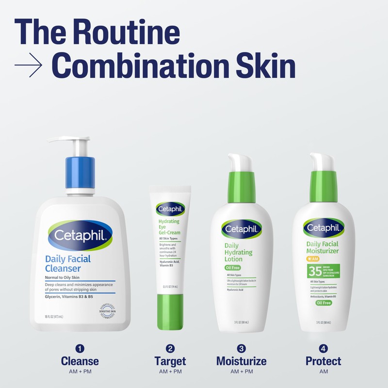 Cetaphil Daily Hydrating Lotion for Face, With Hyaluronic Acid, 3 fl oz, Lasting 24 Hour Hydration, for Combination Skin, No Added Fragrance, Non-Comedogenic