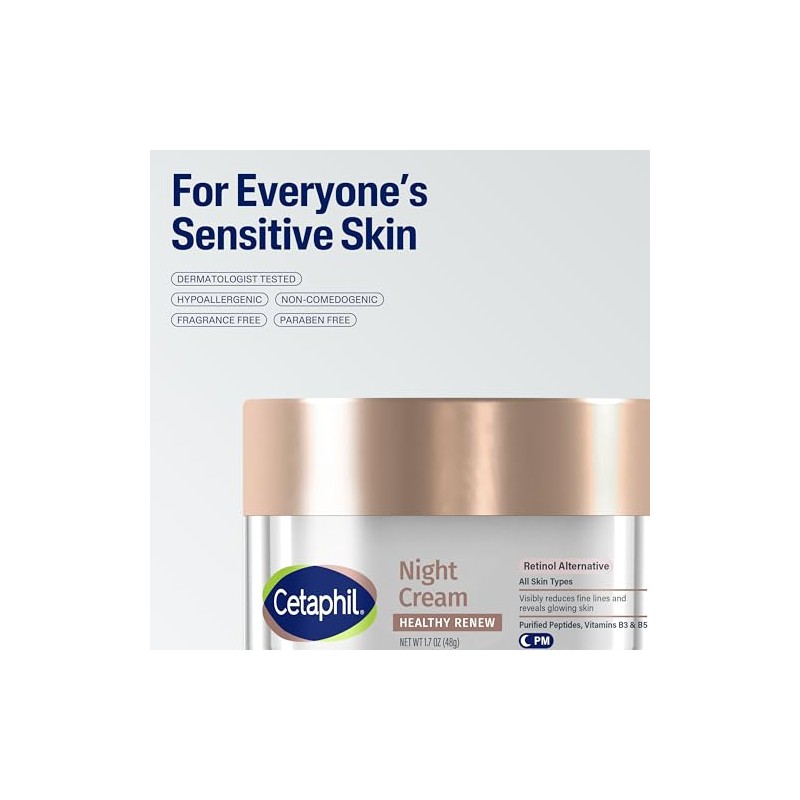 🌟 💄 Cetaphil Healthy Renew Skin Tightening Night Cream 1.7 Oz, Wrinkle Repair Cream for Face with Peptides, Retinol Alternative Cream For Sensitive Skin, Fragrance Free 💄 🌟