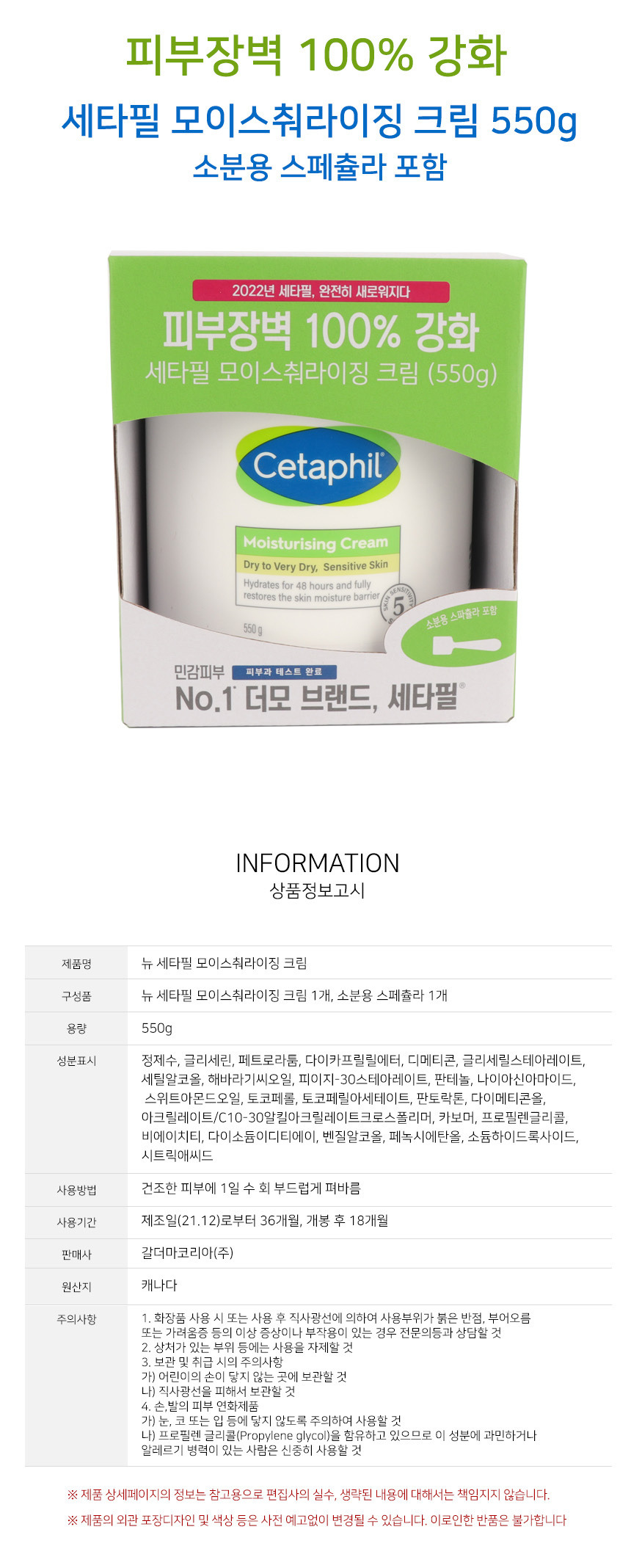 Cetaphil Moisturizing Cream 550g 1p / 세타필 모이스춰라이징 크림 550g 1p