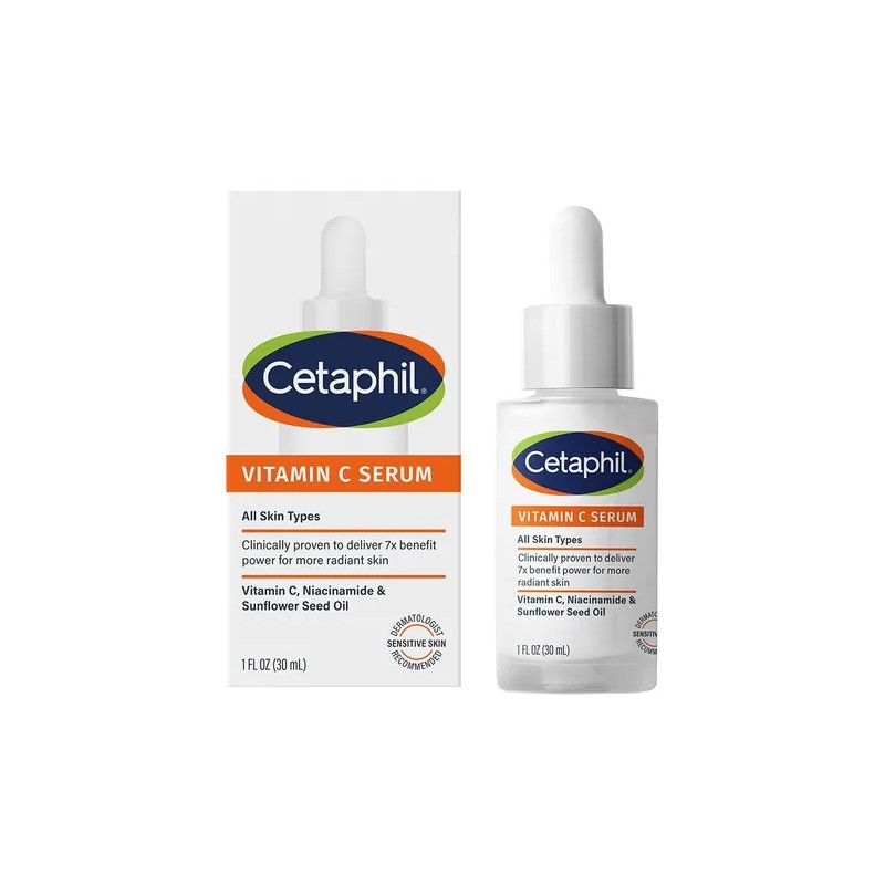 CETAPHIL Suero de Vitamin C es un serum iluminador clínicamente probado que brinda 7 poderosos beneficios para una piel de aspecto más radiante: Hidrata/ proporciona protección Antioxidante/ Unifica visiblemente el tono/ textura de la piel/ aumenta la luminosidad/ reduce la apariencia de manchas oscuras/ líneas finas. Su fórmula está especialmente diseñada para ayudar a combatir las manchas oscuras y defender tu piel contra los radicales libres con ingredientes estrella como NIACINAMIDA (vitamina B3) para lograr un tono visiblemente más uniforme, y ACEITE DE SEMILLA DE GIRASOL para ayudar a hidratar y acondicionar la piel para brindar hidratación hasta por 24 horas.