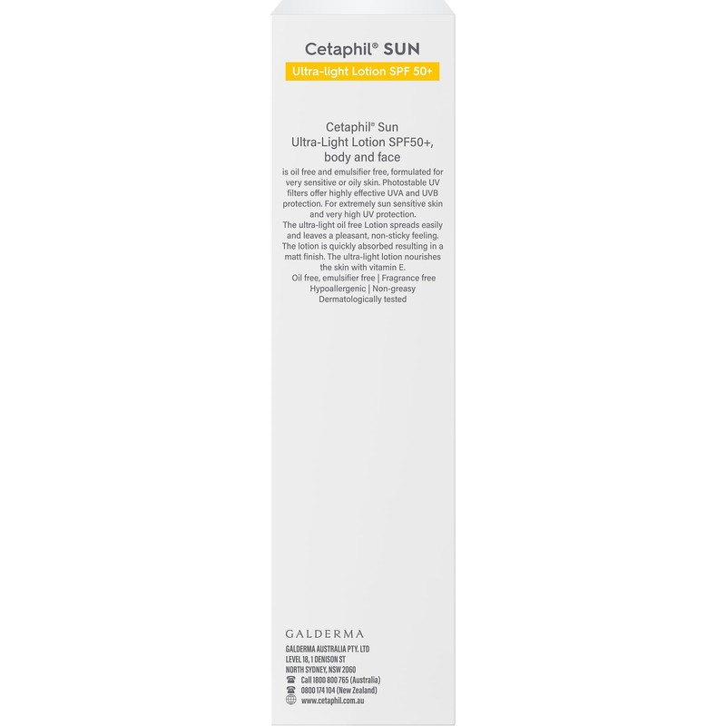 Cetaphil Ultra-Light Sunscreen Lotion SPF 50+ 100ml, Broad Spectrum Sun Protection For Oily Skin, 4 hours water resistant, Suitable Under Make-up, Dermatologist Tested