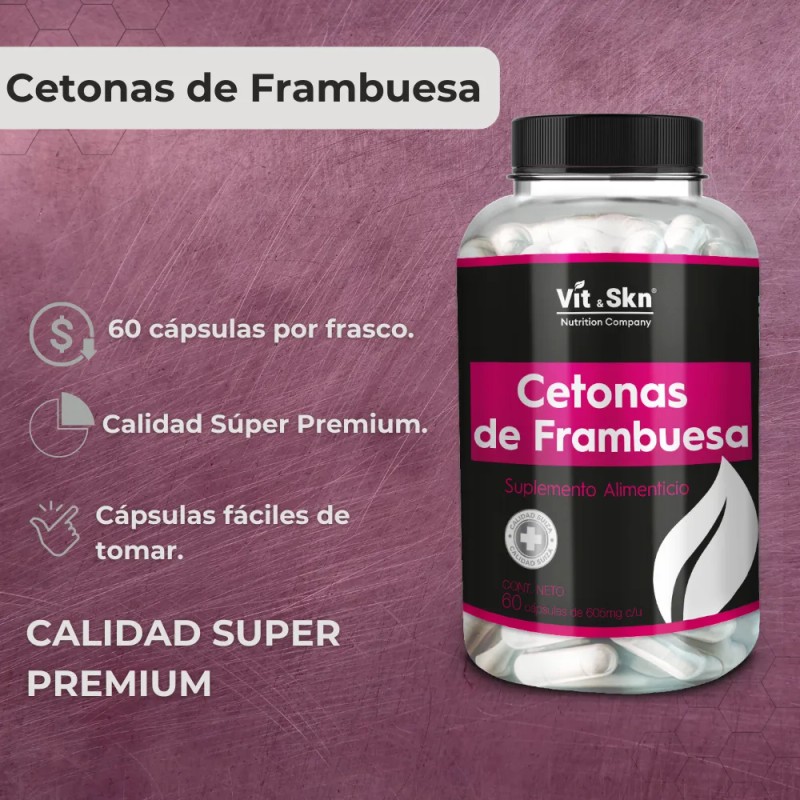 Cetonas De Frambuesa Skin Vit 60 Cápsulas Ideal Para Dieta Keto Súper Premium Sabor Sin Sabor