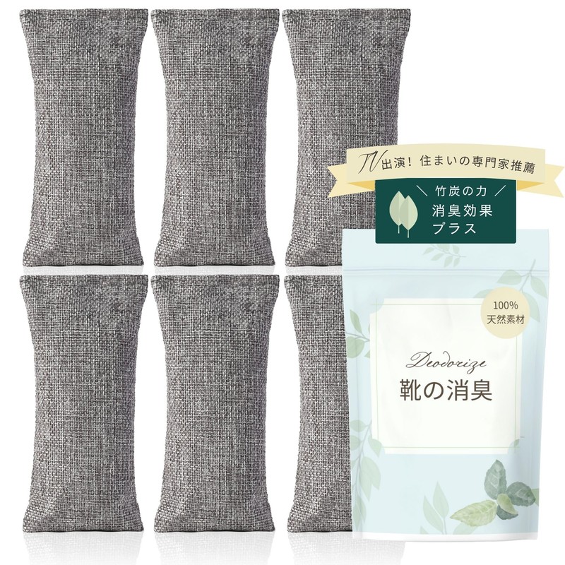 CEVOEL Shoe Deodorizer, Dehumidifier, Bamboo Charcoal, Shoe Box, Reusable, Gray, 6 Pieces