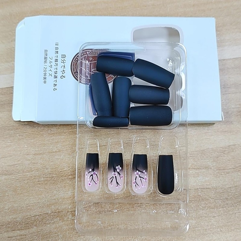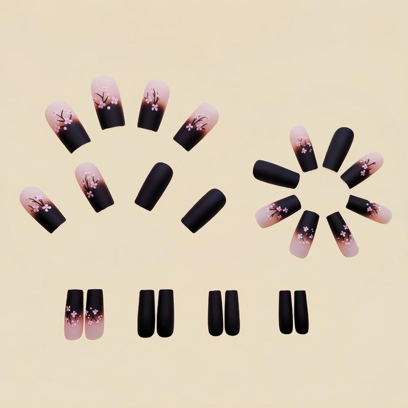 CEWEWP Fall Press on Nails Medium Fake Nails Pink Black Gradient Square Press on Nails Coffin Glossy False Nails with Pink Flowers Designs Full Cover Acrylic Nails Glue on Stick on Nails for Women PCS Specification Color: As the picture shows Material: ABS Size: sizes Package Contents: pcs false nails, pcs Jelly glue, pc wood stick, pc mini nail file, pc alcohol pads. How to use .Gently rub the nail slices with a nail stick to remove the surface cuticles, rinse off and keep the nails clean and dry. .Choose a suitable size sticker for your nails and stick it on your nails. .Remove the top protective layer on the sticker. .Choose the correct size of false nails and stick them on your nails. .Press firmly for about seconds to make sure there is no gap in the middle. .File the fake nail pieces according to your desired shape and length! How to remove .Put your nails in warm water for minutes which will remove the nail adhesive sticker easier. .Gently pry along the side of the nail several times until the nail falls off. .Remove the residual jelly glue, keep the nail and use it repeatedly. Warm note .Do not remove it abruptly which may leave some mark of the nail stickers on your nail surface. .Please allow slight color difference due to different monitor.