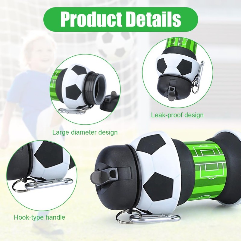 CEWROM Foldable Children's Water Bottle, 550 ml, BPA-Free, Sports Bottle with Carabiner & Football Design, Dishwasher Safe and Leak-Proof for School, Camping & Outdoor Use