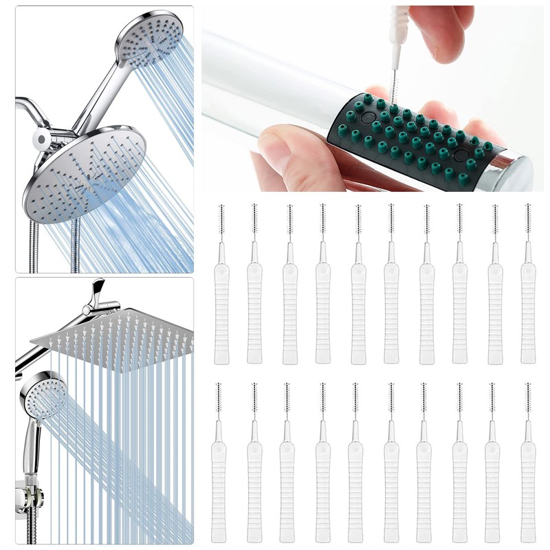 Ceycudy - 20 cepillos de limpieza para cabezal de ducha, cerdas de nailon en espiral, kit de eliminación de acumulación de calcio, limpiador antiobstrucciones para agujeros pequeños, boquillas, suministros para el hogar, baño, cocina, 20 unidades