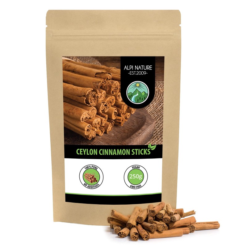 Ceylon Cinnamon Sticks 250g 8.8 oz by Alpi Nature, Cinnamon Sticks 80mm, Approx. 30 per Bag