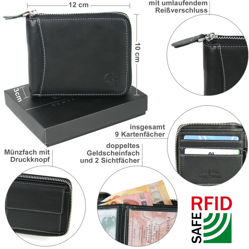CF CATTERFELD Men's Genuine Leather Wallet with RFID Protection, black, purse