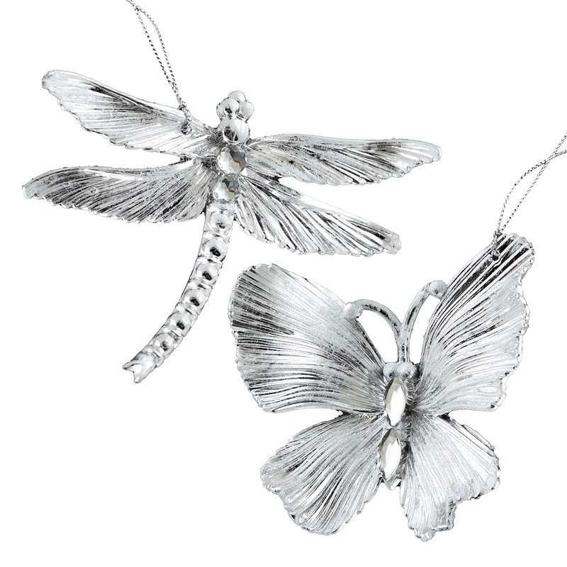 CF Collection Butterfly and Dragonfly Christmas Tree Ornaments [Set of 2] 4 Inches (Shiny Silver)