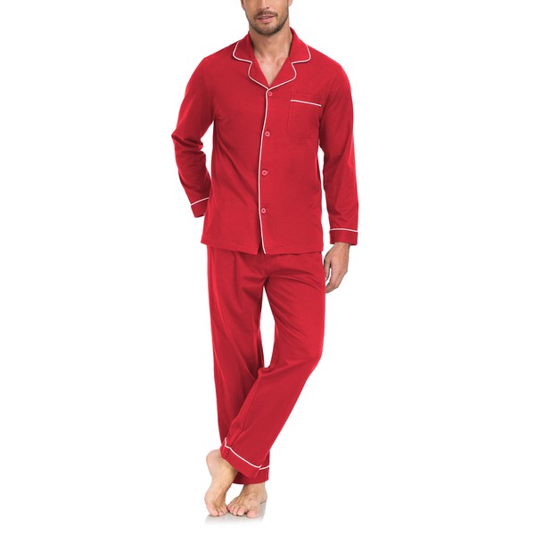 CF Men's Pajama Sets 100% Cotton Pajamas for Men Lightweight Long Sleeve Sleepwear Button Down Pj Set Loungewear with Pockets S-XL(Cherry,S)